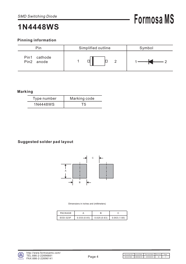 - Suffix "-H" indicates Halogen free part, ex. 1N4448WS-H