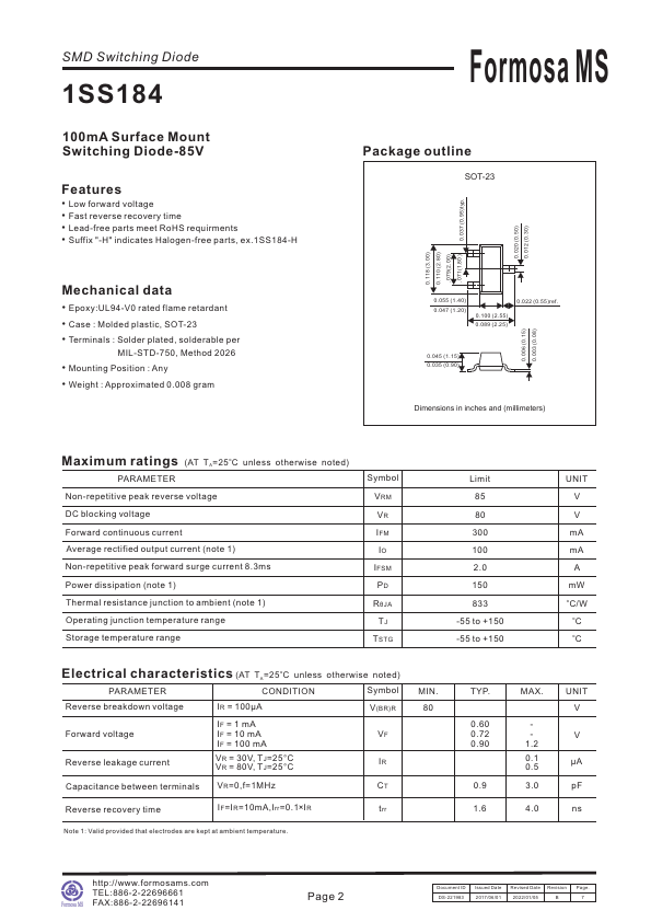 - Suffix "-H" indicates Halogen-free parts, ex.1SS184-H
