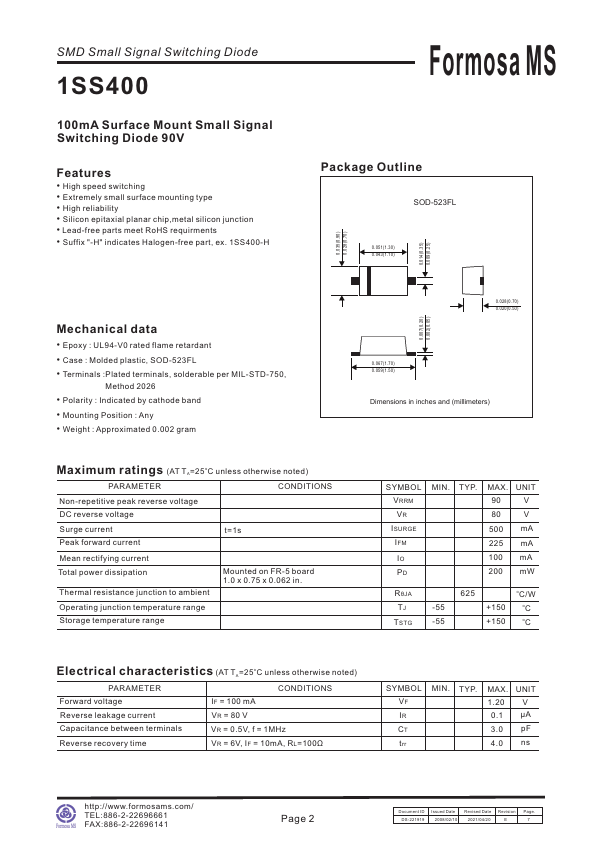 - Suffix "-H" indicates Halogen-free part, ex. 1SS400-H