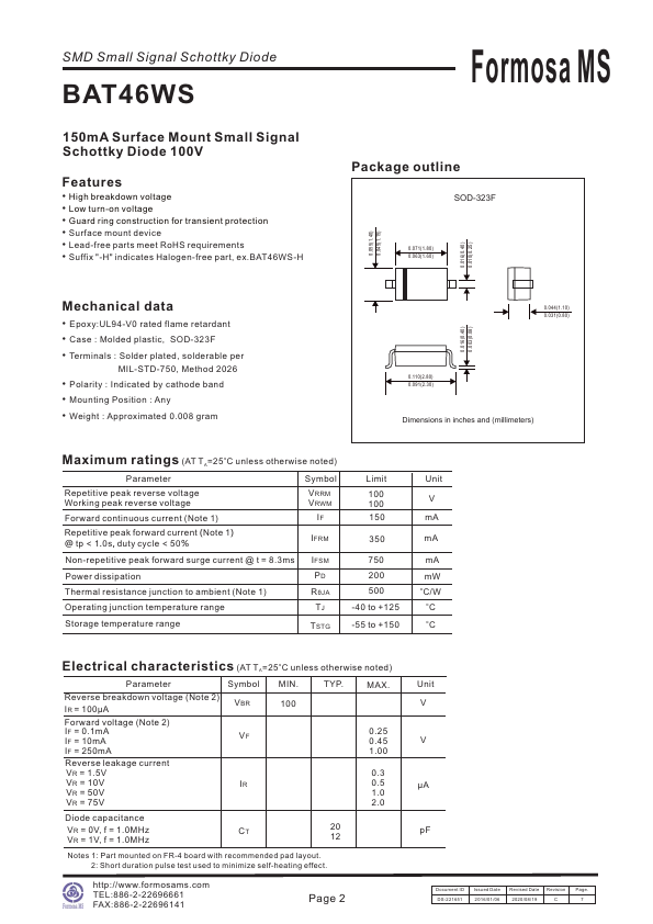 | Datasheet | BAT46WS-FormosaMS.pdf |