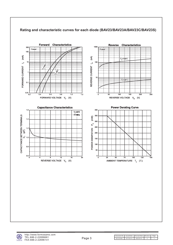 SMD Switching Diode Formosa MS BAV23 / BAV23A / BAV23C / BAV23S 225mA Surface Mount Switching Diode 200V.
