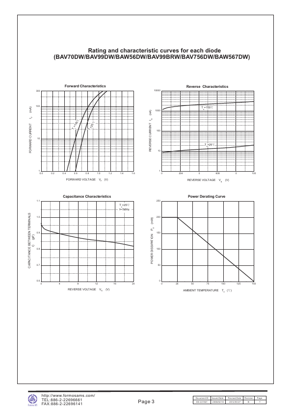 SMD Switching Diode Array Formosa MS BAV70DW/BAV99DW/BAW56DW BAV99BRW/BAV756DW/BAW567DW 150mA Surface Mount Switching Diode Array - 100V Package outline.