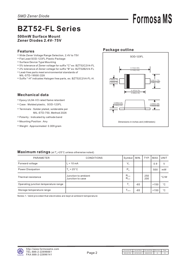 - Case : Molded plastic, SOD-123FL
