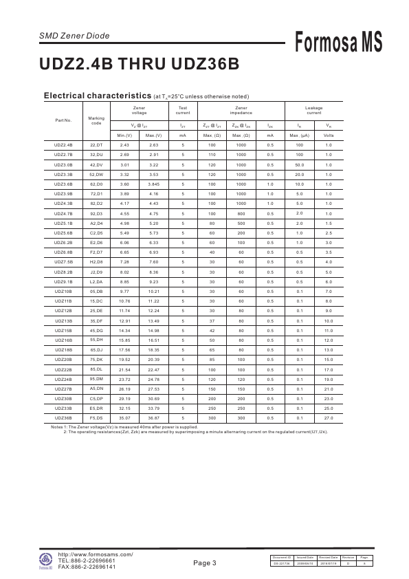 SMD Zener Diode UDZ2.4B THRU UDZ36B 200mW Surface Mount Zener Diodes 2.4V-36V Formosa.