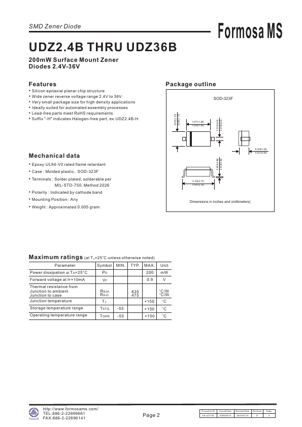 SMD Zener Diode UDZ2.4B THRU UDZ36B 200mW Surface Mount Zener Diodes 2.4V-36V Formosa.