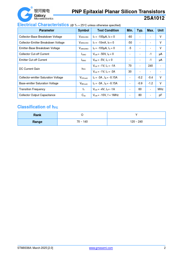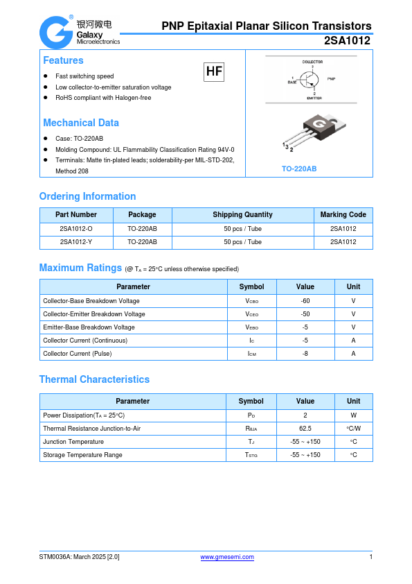 PNP Epitaxial Planar Silicon Transistors 2SA1012.