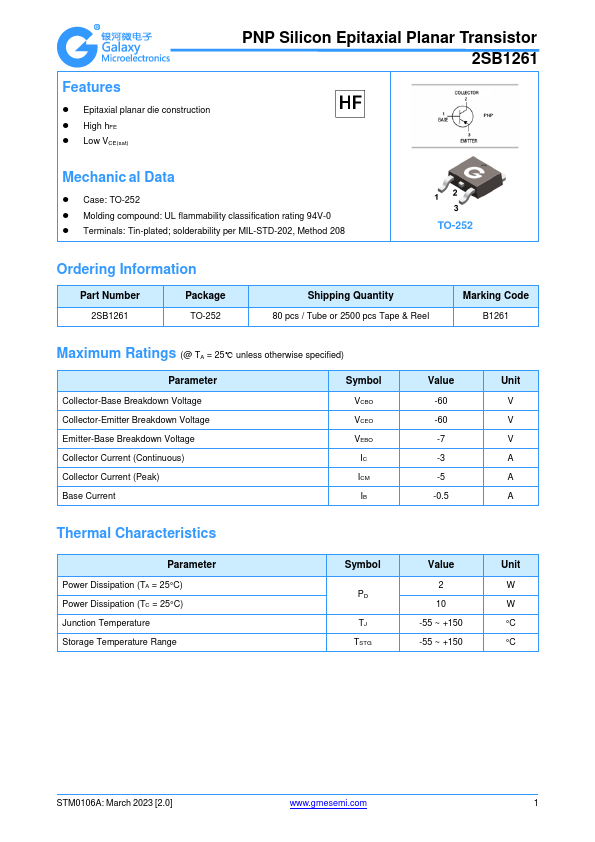 2SB1261 | PNP Silicon Epitaxial Transistors | MCC |