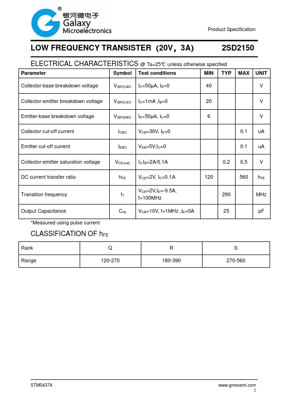 Overview: Product Specification LOW FREQUENCY TRANSISTER(20V,3A).