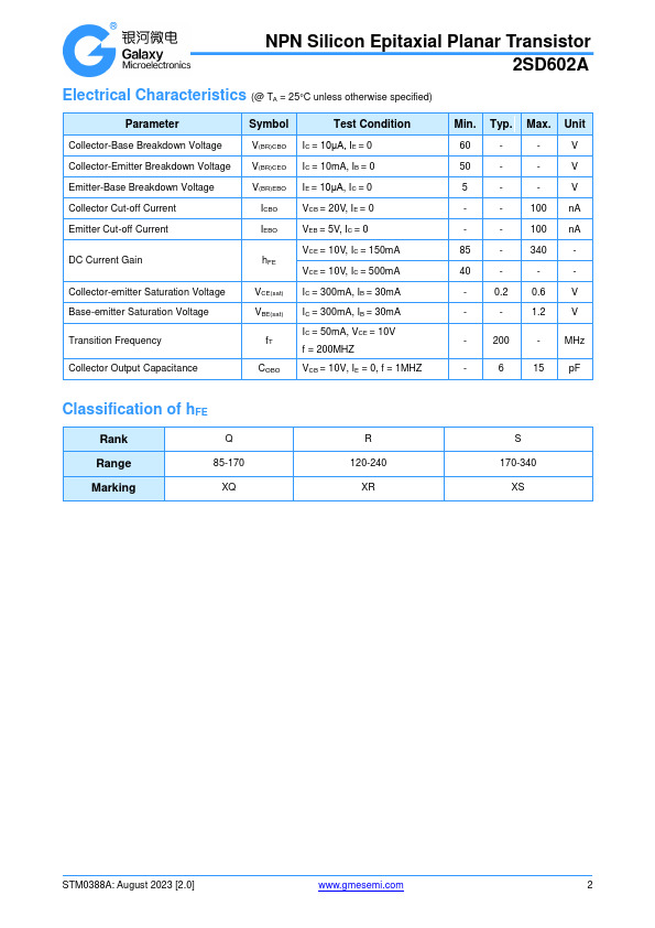NPN Silicon Epitaxial Planar Transistor 2SD602A.