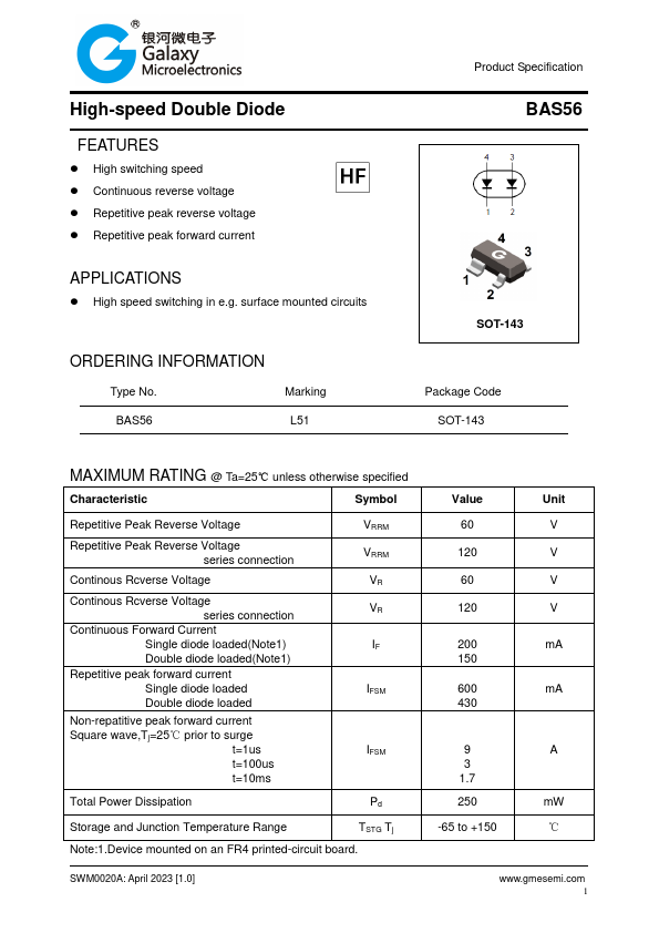 | BAS56 | DUAL HIGH CURRENT SWITCHING DIODE | Central Semiconductor Corp | |
