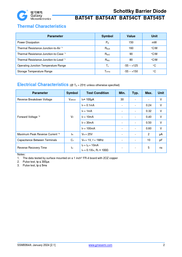 This datasheet PDF includes multiple part numbers: BAT54CT, BAT54T. Please refer to the document for exact specifications by model. |