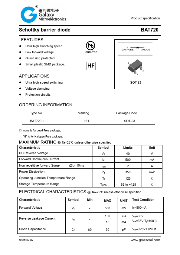 | BAT46W | Small Signal Schottky Barrier Diode |