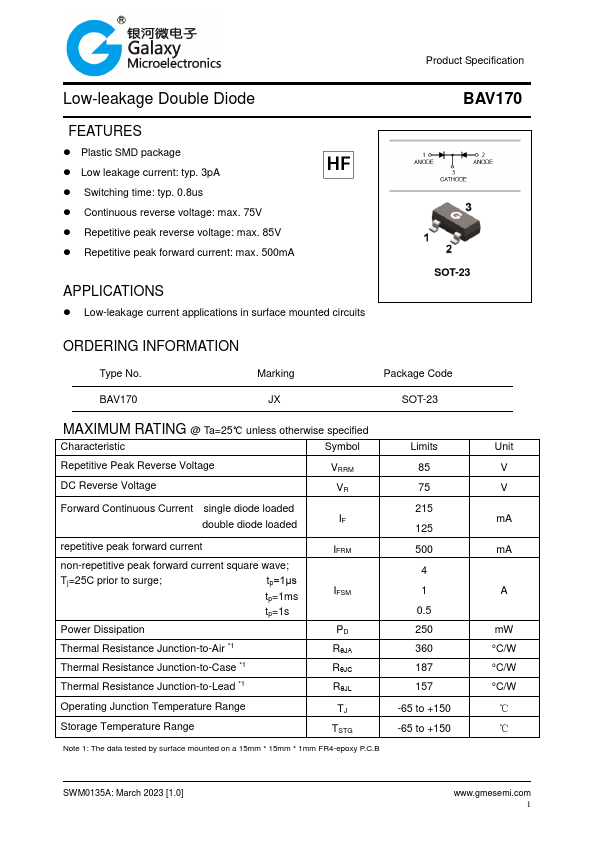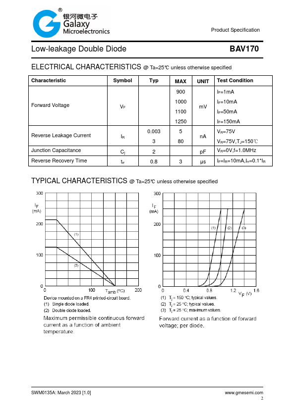 Product Specification Low-leakage Double Diode BAV170.