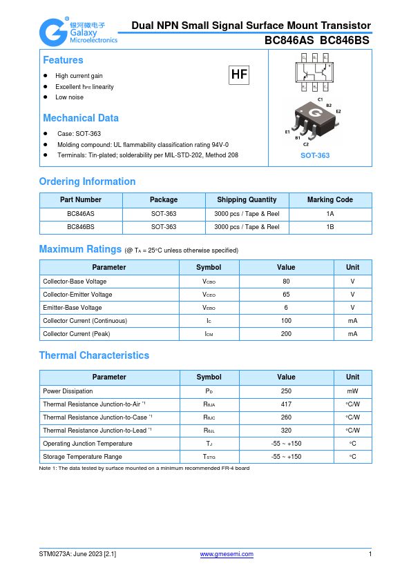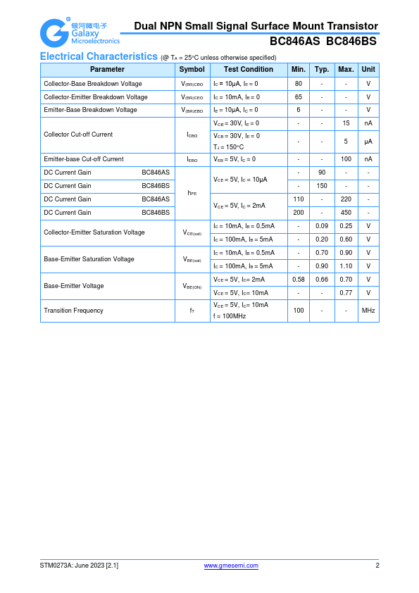 BC846BS | NPN Plastic Encapsulate Transistor | SeCoS |