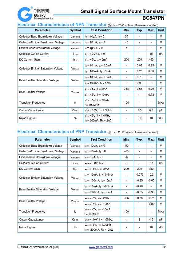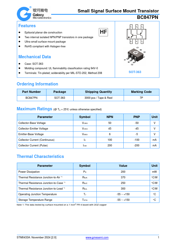 Small Signal Surface Mount Transistor BC847PN.