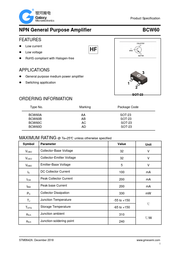 | BCW65 | NPN Silicon Epitaxial Planar Transistor |