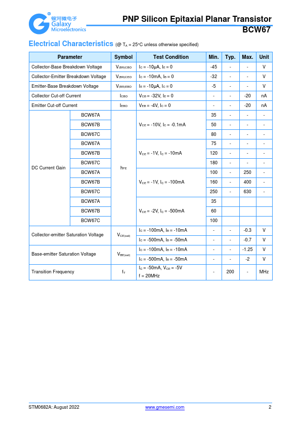 | BCW67 | PNP Silicon Epitaxial Planar Transistor |