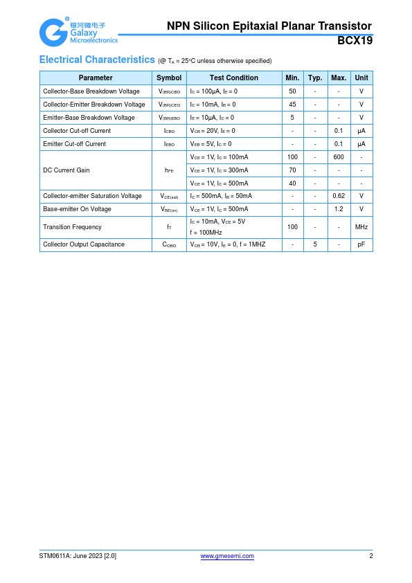 BCX19 | SMALL SIGNAL NPN TRANSISTOR | STMicroelectronics |
