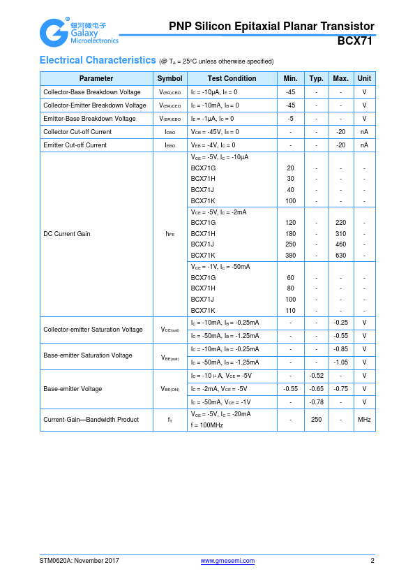 Overview: PNP Silicon Epitaxial Planar Transistor BCX71.