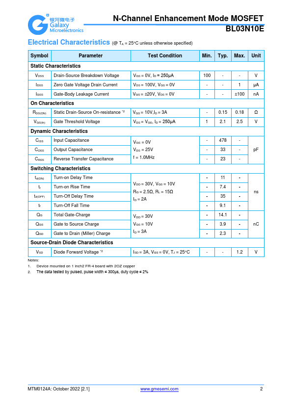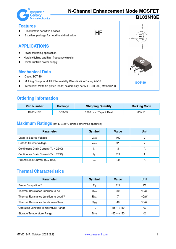 N-Channel Enhancement Mode MOSFET BL03N10E.