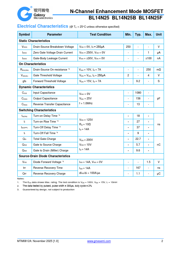 N-Channel Enhancement Mode MOSFET BL14N25 BL14N25B BL14N25F
