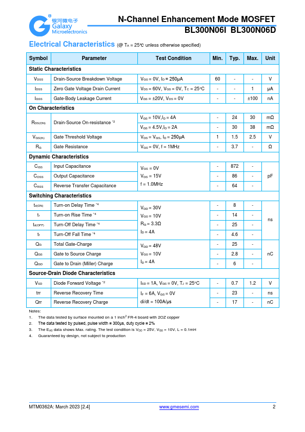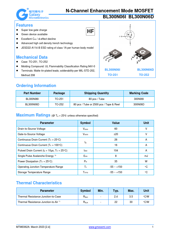 N-Channel Enhancement Mode MOSFET BL300N06I BL300N06D.