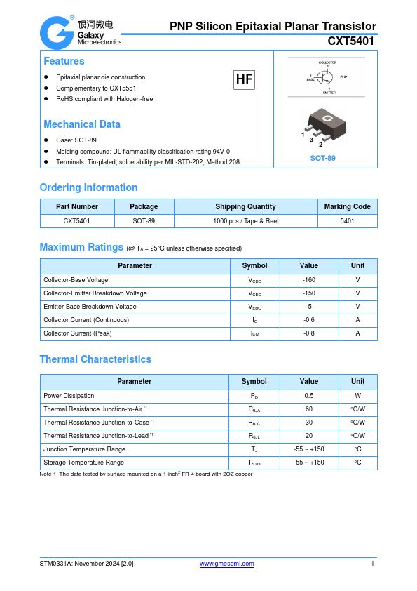 CXT5401 | Surface Mount PNP Silicon Transistor | Kexin |