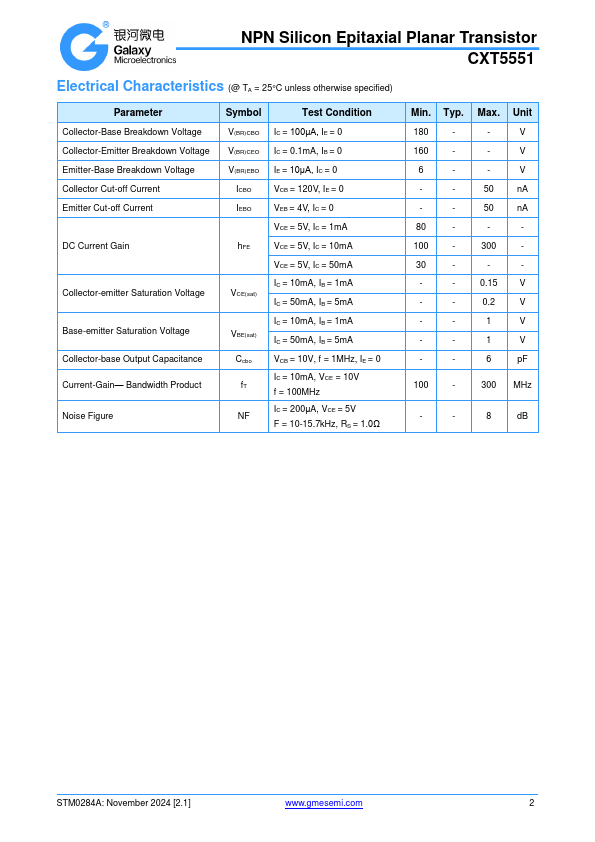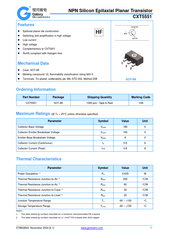 Overview: NPN Silicon Epitaxial Planar Transistor CXT5551.