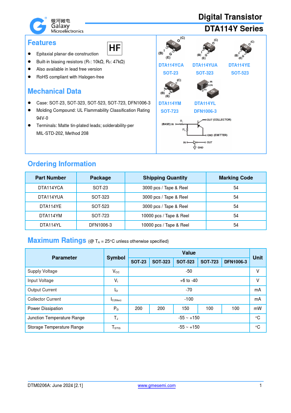 DTA114YC3 | PNP Digital Transistors | CYStech Electronics |