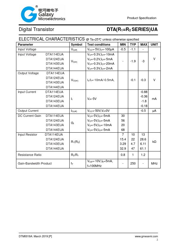DTA124EUA | DIGITAL TRANSISTORS | Rectron |