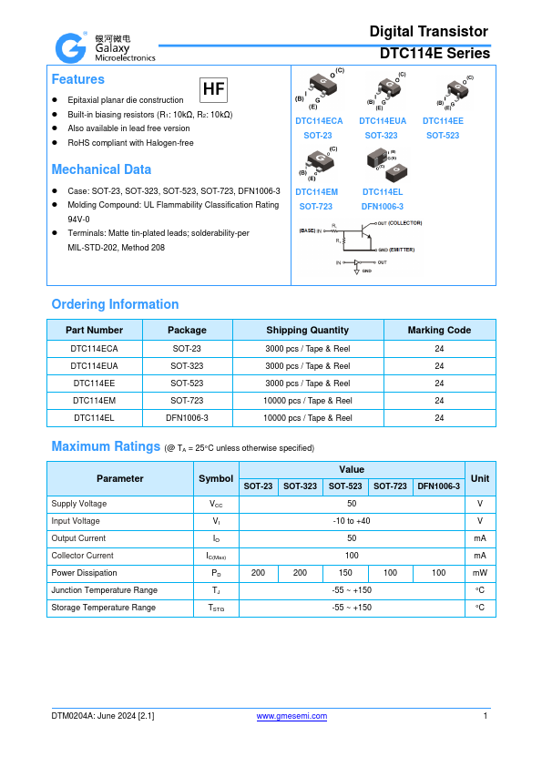 DTC114EUA | Digital Transistors NPN | SeCoS Halbleitertechnologie GmbH |
