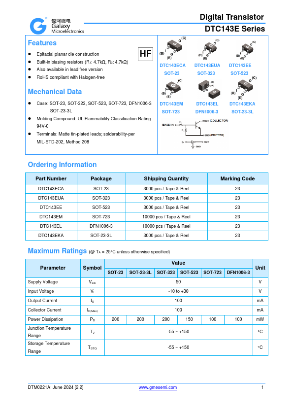 | Datasheet | DTC143EL DTC143ECA Datasheet (PDF) |