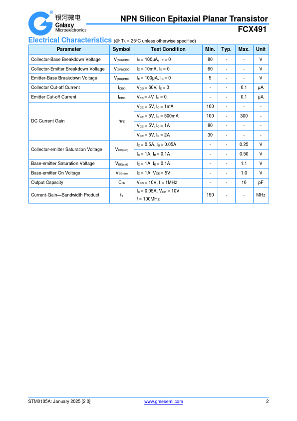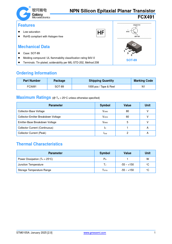 FCX491A | 40V NPN MEDIUM POWER TRANSISTOR | Diodes |