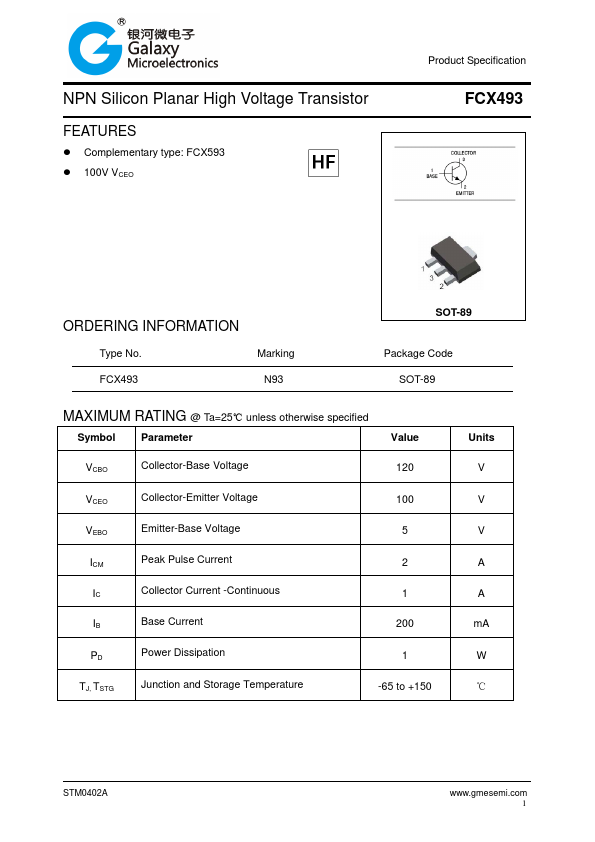 FCX493 | NPN Silicon Planar Medium Power Transistor | Kexin |