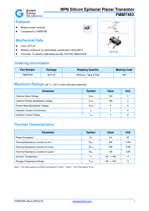 FMMT493 | NPN Plastic-Encapsulate Transistor | Semiware |