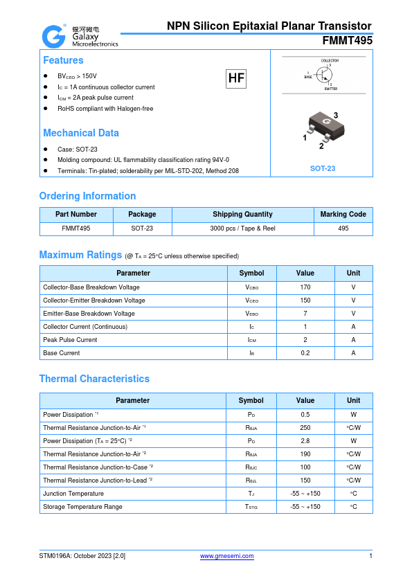 Overview: NPN Silicon Epitaxial Planar Transistor FMMT495.