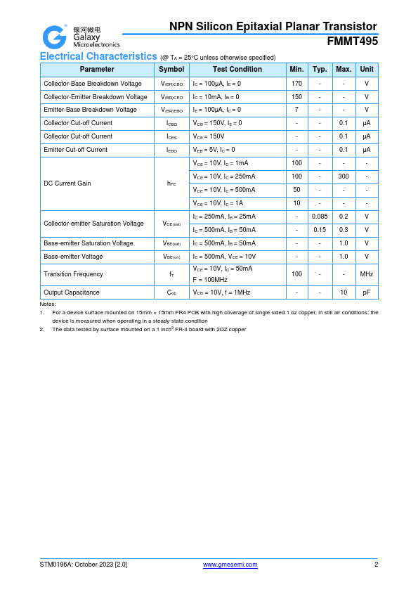 FMMT495 | 150V NPN SILICON PLANAR MEDIUM POWER TRANSISTOR | DIODES |