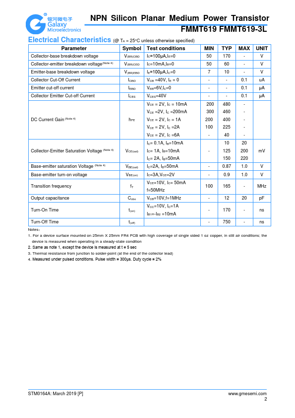 Overview: NPN Silicon Planar Medium Power Transistor FMMT619 FMMT619-3L.