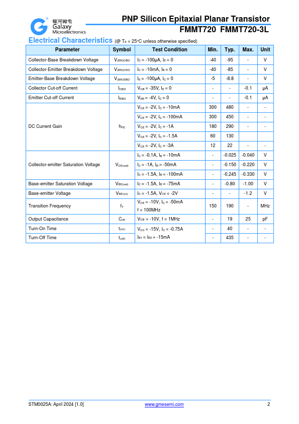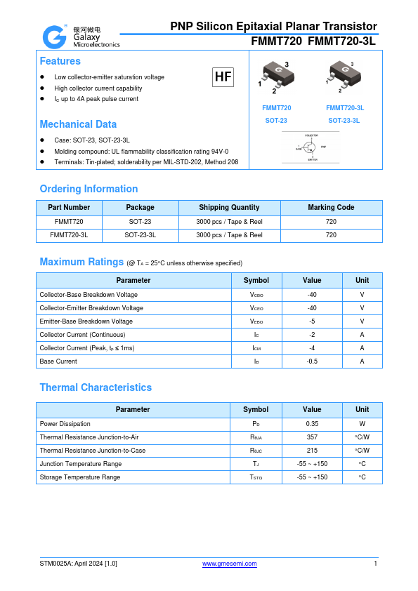 Overview: PNP Silicon Epitaxial Planar Transistor FMMT720 FMMT720-3L.