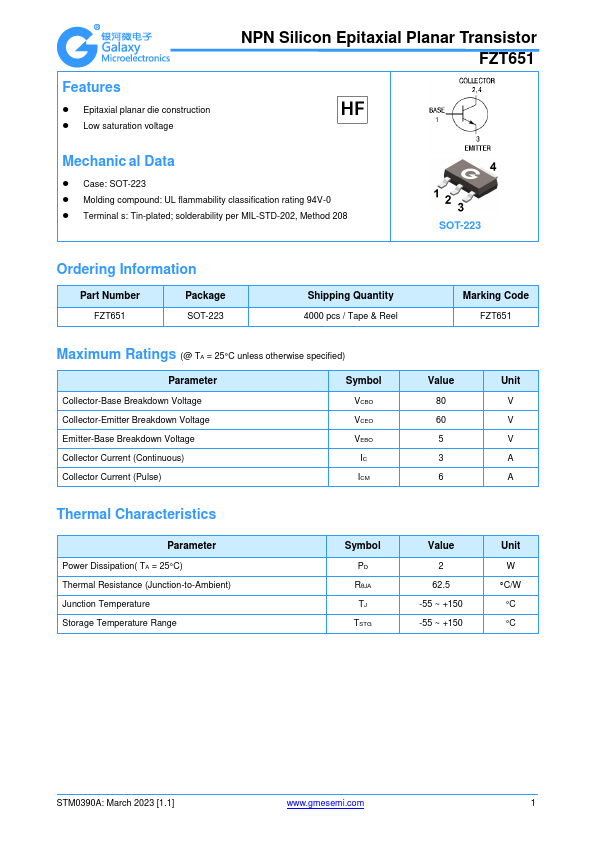 FZT651 | 60V NPN MEDIUM POWER TRANSISTOR | Diodes |
