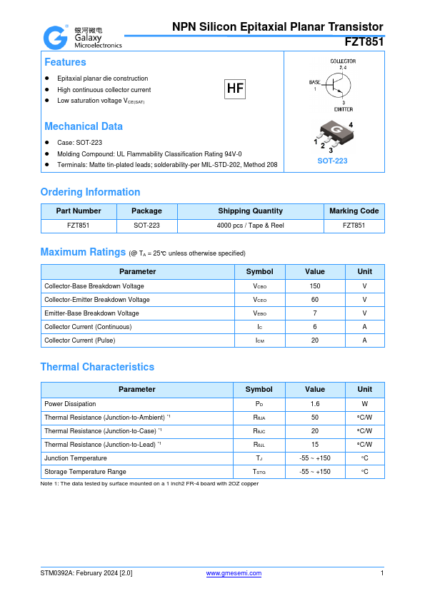 NPN Silicon Epitaxial Planar Transistor FZT851