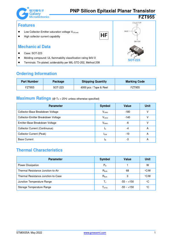 FZT955 | PNP Plastic-Encapsulate Transistor | Semiware |