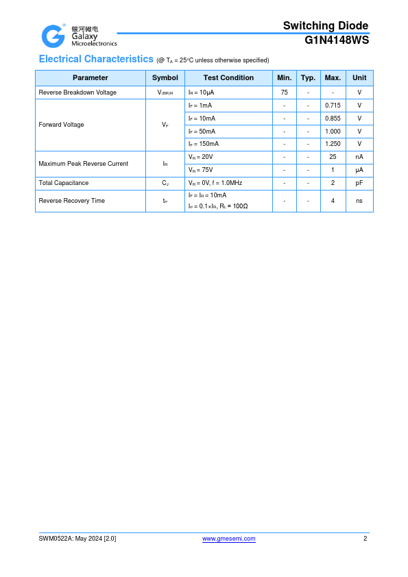 Fast switching speed High conductance RoHS compliant with Halogen-free