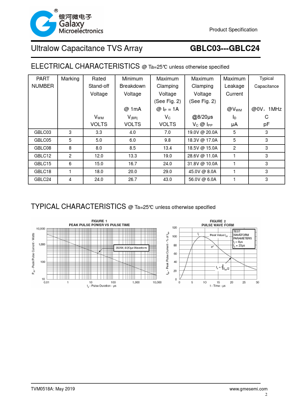 - 350 Watts Peak Pulse Power per Line (tp = 8/20μs)