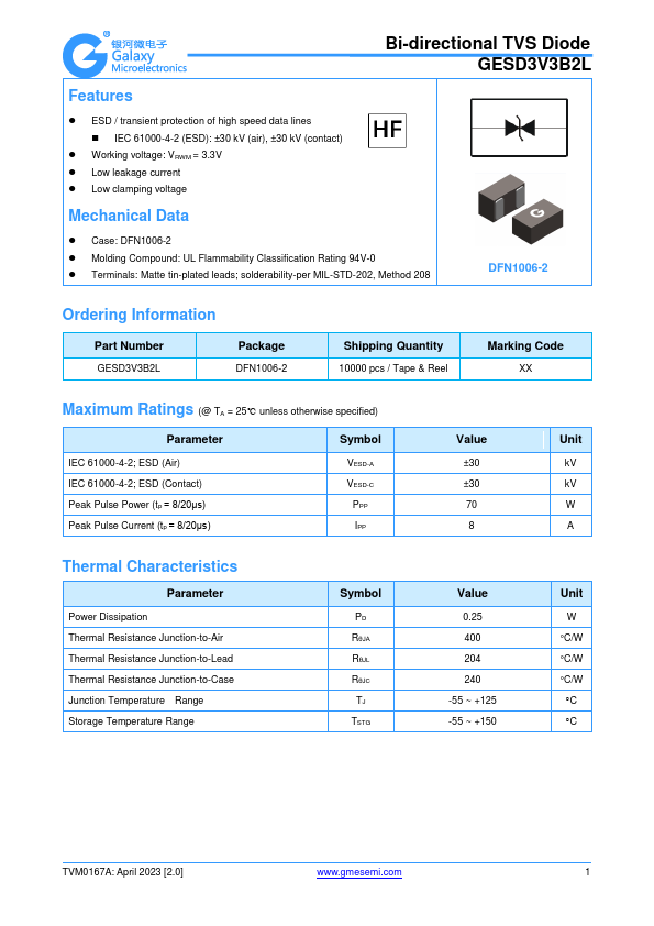 Bi-directional TVS Diode GESD3V3B2L.