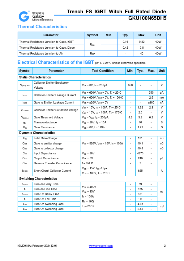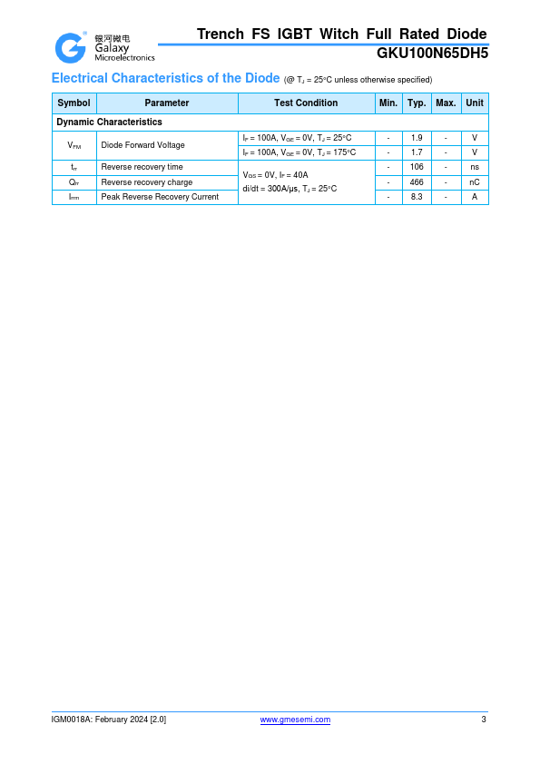 Trench FS IGBT Witch Full Rated Diode GKU100N65DH5