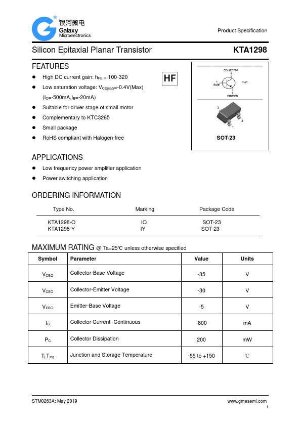 | KTA1275 | PNP Silicon Epitaxial Planar Transistor |