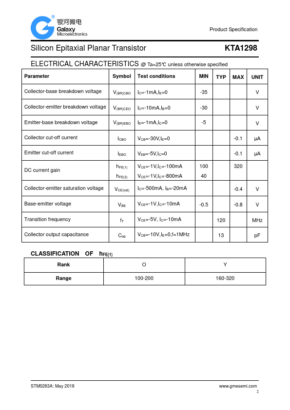 KTA1298 | EPITAXIAL PLANAR PNP TRANSISTOR | KEC |