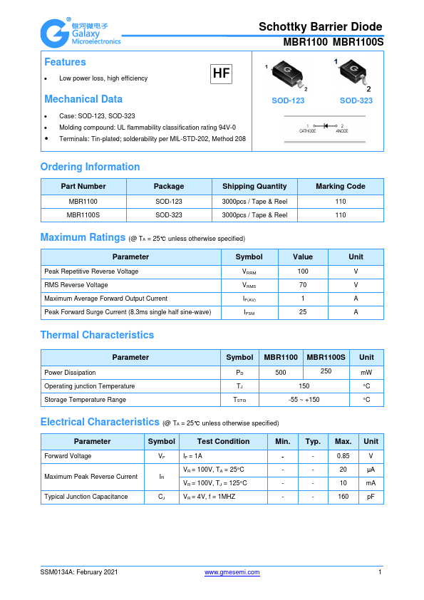 | MBR1100S | Schottky Barrier Diode |