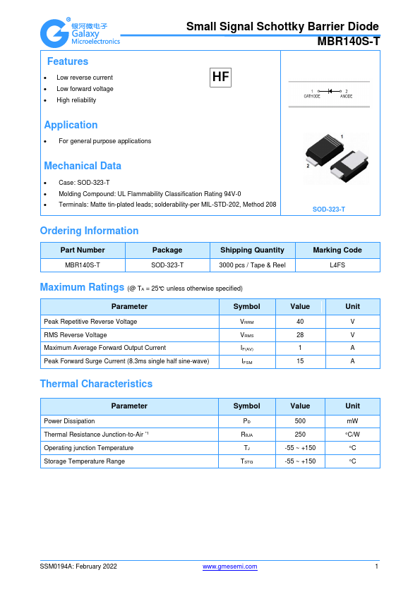 | MBR140SF | Surface Mount Schottky Power Rectifier | ON Semiconductor | |